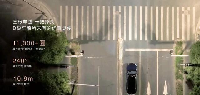 同时,转向比可以完全由软件定义:在ET9上,低速时转向传动比可低至6:1,泊车调头一把过;高速时则增大至14:1,行驶更加沉稳。